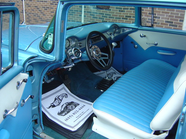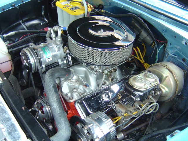 GM Subframe, 400 V-8 engine, automatic overdrive transmission, power steering, power disc brakes, air conditioning, performance upgrades, chrome accessories, headers, dual exhaust with Flowmasters, aluminum radiator, 10-bolt rear, custom 2-tone interior, Lokar shifter, aftermarket tach and gauges, Grant steering wheel, CD/DVD player, nice chrome 1-piece bumpers and trim, lowered suspension, 17" aluminum Torque Thrust wheels. Stock#3413-1