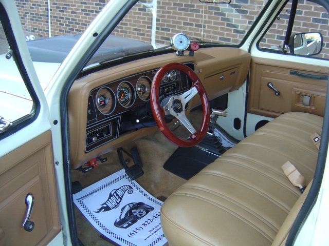Big Block 440 V-8 engine, automatic transmission, power steering, power disc brakes, performance upgrades, chrome and aluminum accessories, Indy 440 EZ-1 aluminum heads and intake, MSD ignition, headers, dual side exit exhaust, traction bars, Line-lock, dual gas tanks, B&M shifter, Autometer tach and gauges, Grant steering wheel, CD player, extended wheel tubs, hood scoop, good chrome bumpers and trim, lowered suspension, staggered 15" aluminum Weld wheels with 28x12x15 rear M/T S/R tires. Stock#3470 $19,900