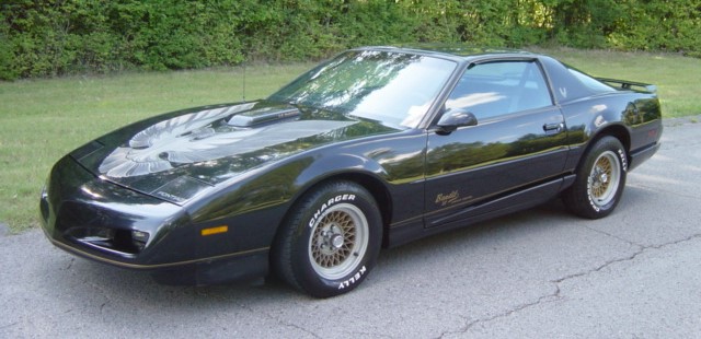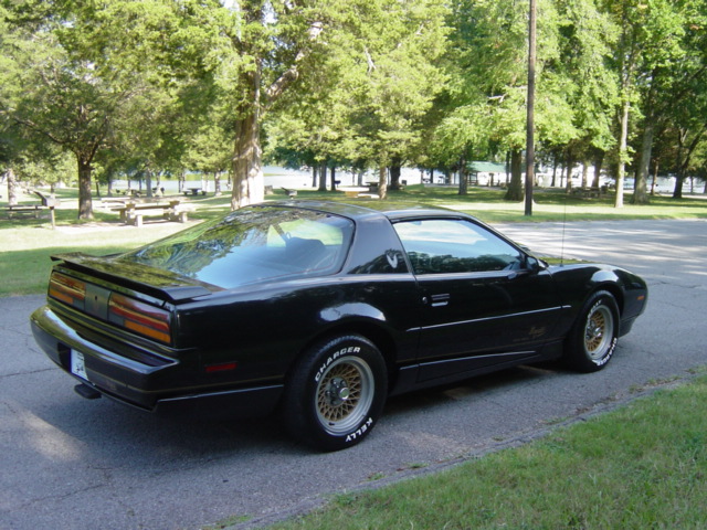 305 V-8 engine, automatic overdrive transmission, power steering, power disc brakes, air conditioning, bucket seats, console with floor shifter, factory tach and gauges, tilt steering column, T-tops, hood scoop, spoiler, Bandit II graphics, 15” aluminum wheels. Stock#1781 $8950