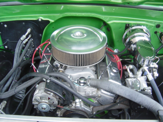 350 V-8 engine with aluminum heads, automatic transmission, power steering, power disc brakes, Vintage air conditioning, performance upgrades, chrome and aluminum accessories, headers, dual exhaust with Flowmasters, aluminum radiator, 12-bolt rear, relocated gas tank, new wiring harness, custom shaved dash, tilt steering column, bucket seats, Grant steering wheel, LED lights, cowl hood, custom graphics and pinstriping, nice chrome bumpers and trim, 20" chrome Torque Thrust wheels. Stock#2860 $32,900