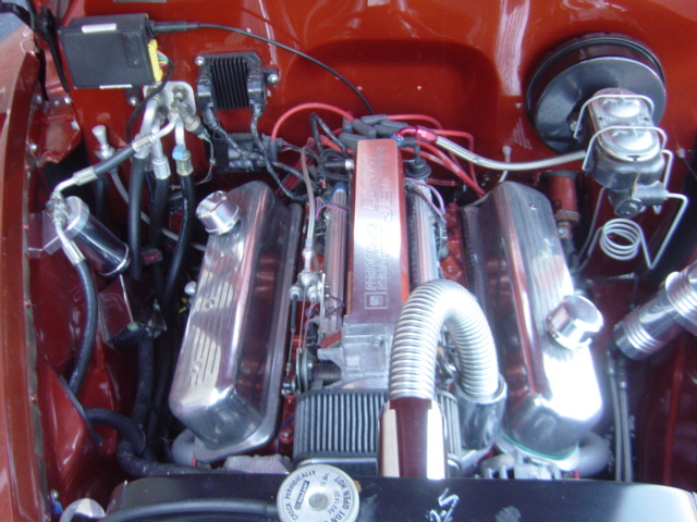 Fuel Injected Ram Jet 350 V-8 engine, automatic overdrive transmission, Mustang II front suspension with adjustable coilovers, power rack and pinion steering, power 4-wheel disc brakes, air conditioning, billet serpentine belt conversion, headers, dual exhaust, front and rear sway bars, custom interior with power leather bucket seats, console with floor shifter, tilt steering column, power windows, Dakota Digital gauges, billet steering wheel and interior accessories, CD player, cruise control, custom body work including shaved doors, bumpers, & trim, gas filler, and lights, lowered suspension, staggered 17" Billet Specialties aluminum wheels. Stock#2881