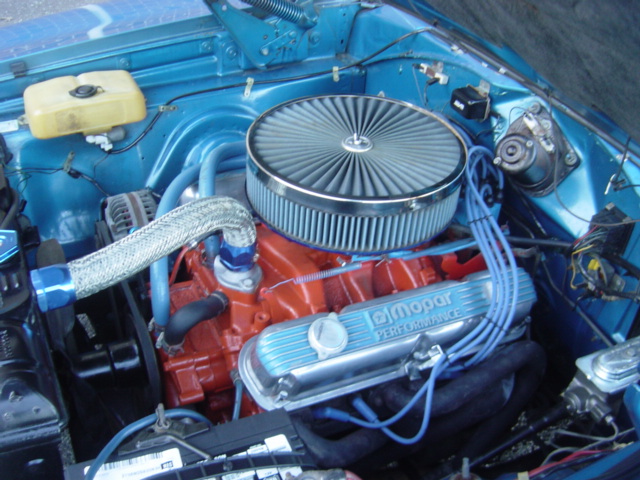 318 V-8 engine, automatic transmission, aluminum accessories, headers, dual exhaust, bucket seats with folding buddy seat, hide-a-way headlights, good chrome bumpers and trim, 14" chrome Magnum 500 wheels. Stock#2869