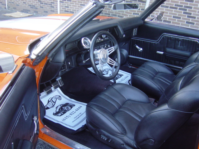 350 V-8 engine, 5-speed manual transmission, power steering, power disc brakes, performance upgrades, aluminum accessories, headers, dual exhaust with Flowmaster style mufflers, 12-bolt rear, bucket seats, Hurst Indy shifter, aftermarket tach and gauges, billet steering wheel, CD player, power top, fiberglass cowl hood, nice chrome bumpers and trim, staggered 18" and 20" aluminum Torque Thrust wheels. Stock#2860-1