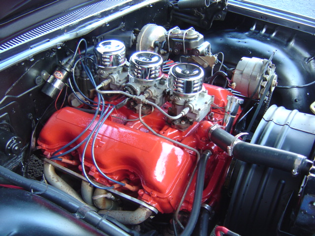 "W-Series" 348 V-8 engine, 4-speed manual transmission, power disc brakes, Tri-power intake and carburetors, headers, dual exhaust with Flowmaster style mufflers, Hurst shifter, Autometer Sport Comp gauges, digital radio, dual antennas, 1-piece bumpers, staggered 14" and 15" aluminum Torque Thrust wheels. Stock#3381 $31,900