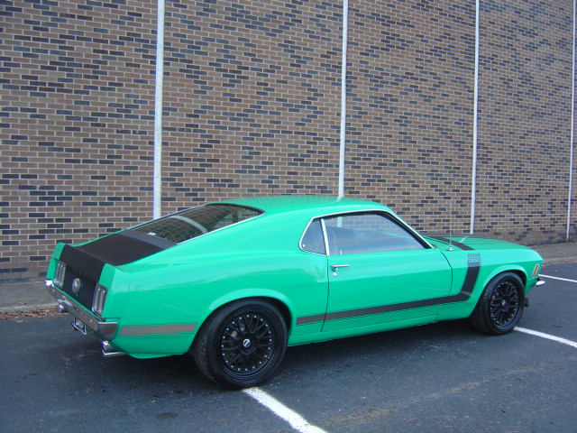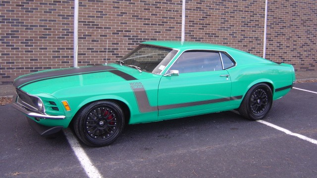 V-8 engine, automatic transmission, power steering, power 4-wheel disc brakes, performance upgrades, aluminum accessories, headers, dual exhaust, aluminum radiator, bucket seats, console with floor shifter, digital radio, woodgrain steering wheel, good chrome bumpers and trim, Boss 302 graphics, 18" XXR aluminum wheels. Stock#3373
