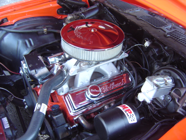 400 V-8 engine, automatic transmission, power steering, power disc brakes, performance upgrades, chrome accessories, headers, dual exhaust with Flowmaster style mufflers, aluminum radiator, bucket seats, console with floor shifter, aftermarket gauges, USB radio, tint, cowl hood, front and rear spoilers, Z-28 emblems, good chrome bumpers and trim, lowered suspension, staggered 18" and 20" chrome Resto wheels. Stock#3408