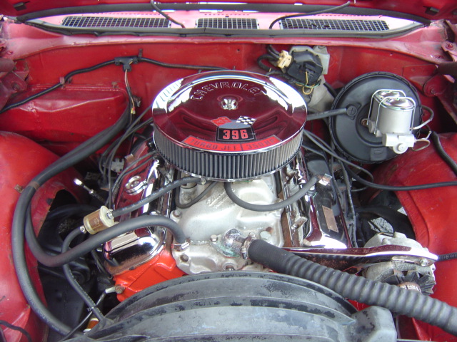Big Block 396 V-8 engine, 4-speed manual transmission, power disc brakes, performance upgrades, chrome accessories, headers, dual exhaust with Flowmasters, 12-bolt rear, bucket seats, console, Hurst shifter, factory tach and gauges, CD player, dual bulge hood, 15" rally wheels. Stock#3150
